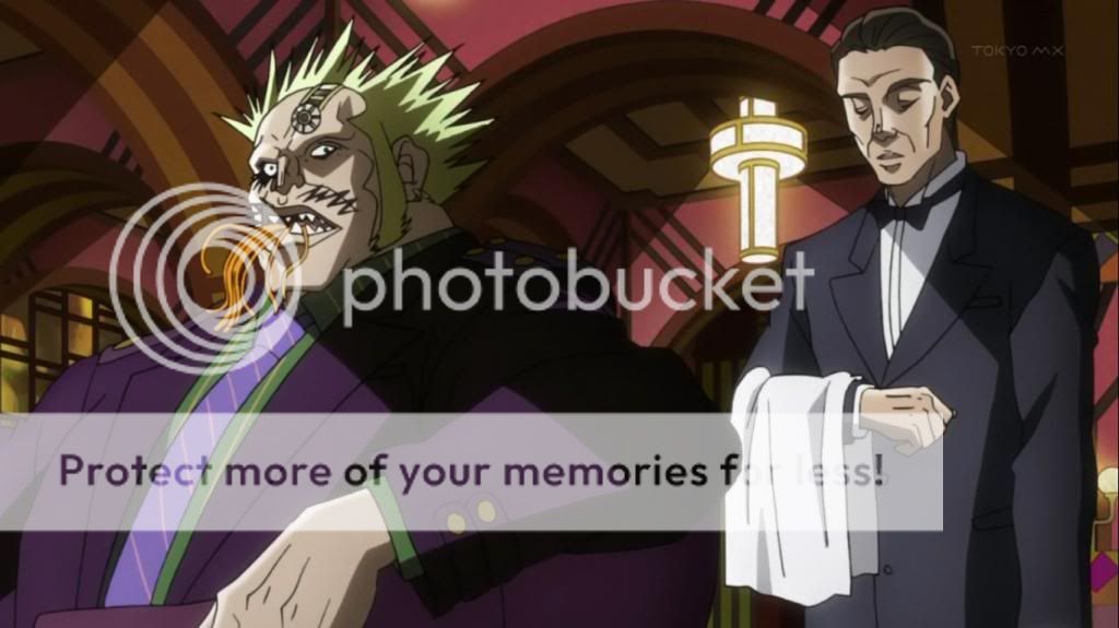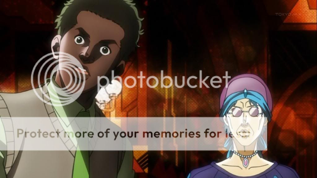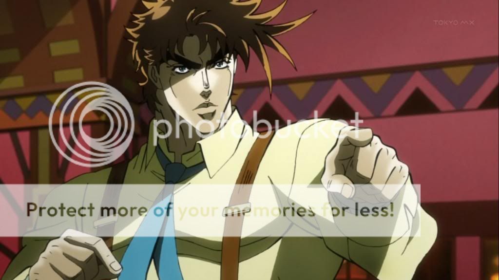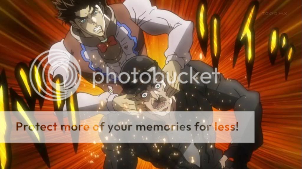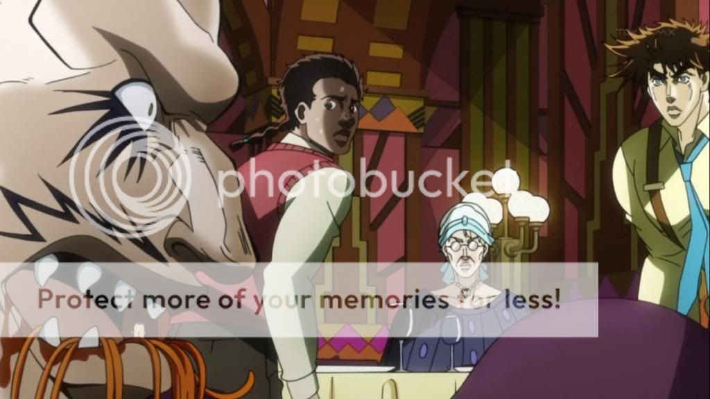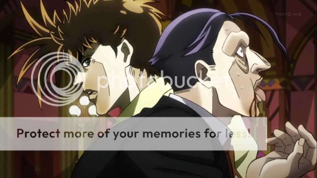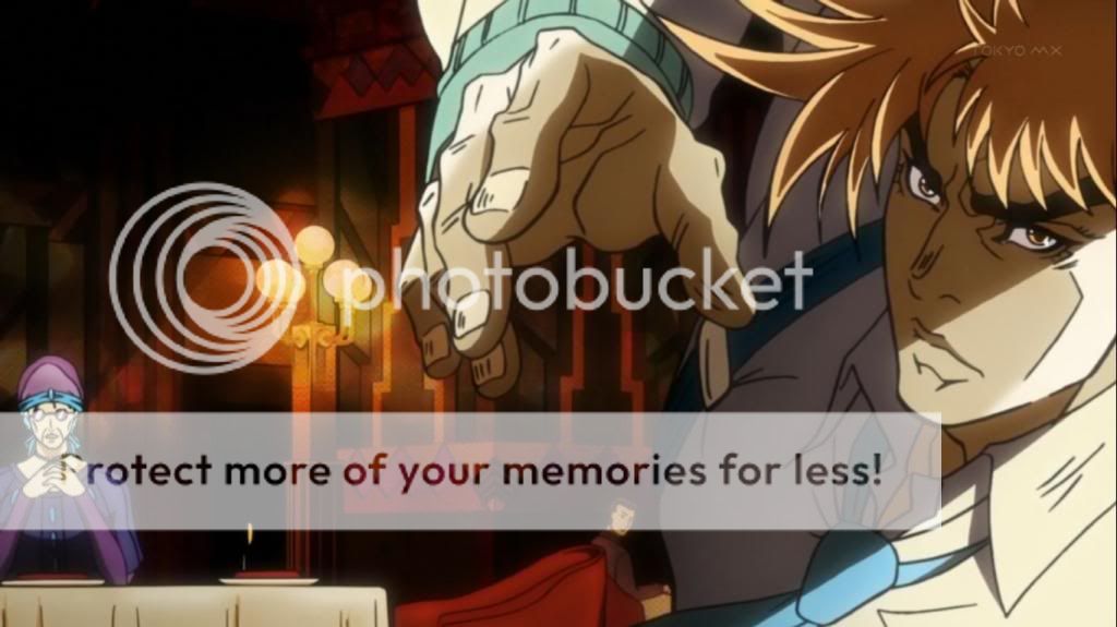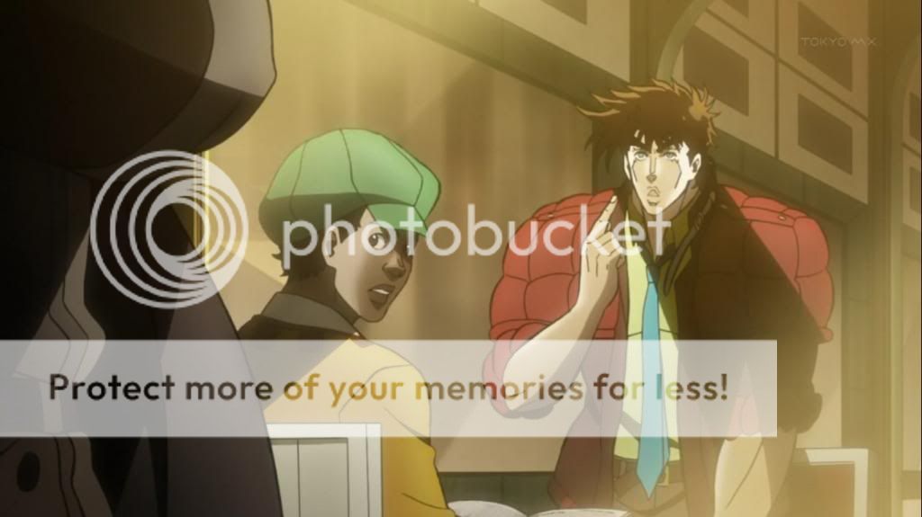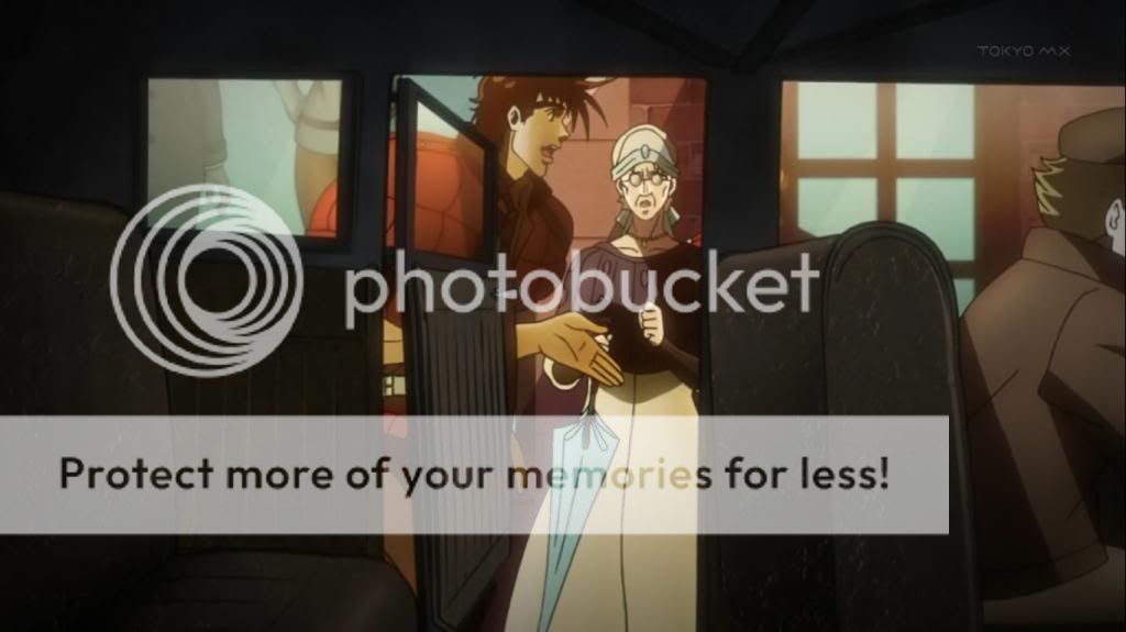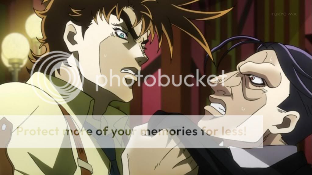 而喬瑟夫見狀,也上前表明自己會守護她的決心。不過在漫畫中,雖然艾莉娜的感嘆是在這的沒錯,不過喬瑟夫的安撫其實是在之後才出現的,場景也不是在這間餐廳,動畫算是將其融合,一次交代出來吧。