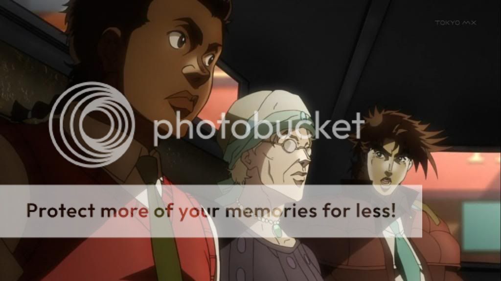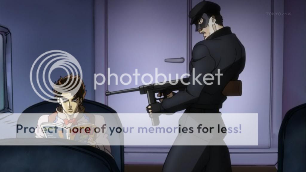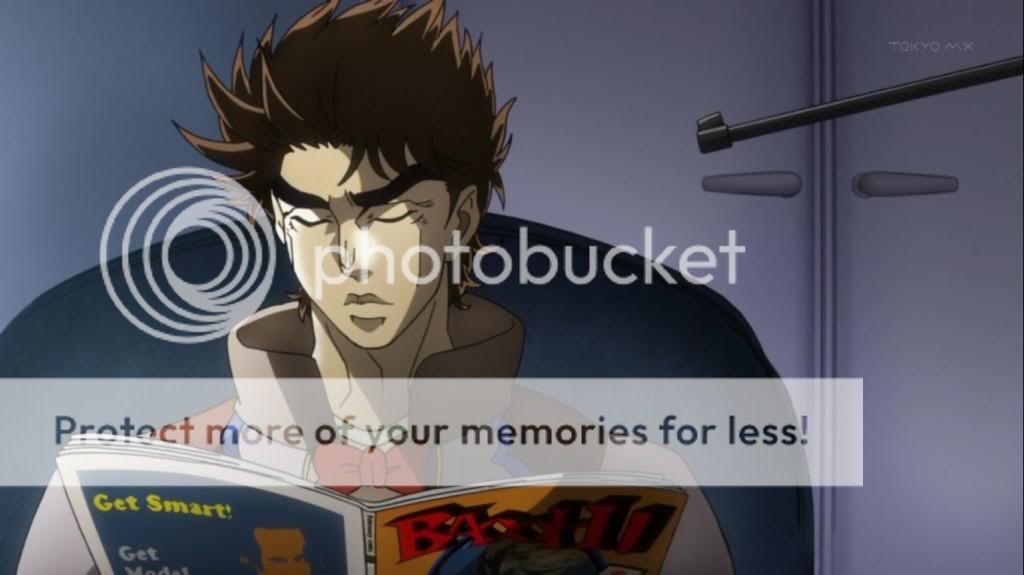 不過喬瑟夫只顧著看漫畫,全然不想理會劫機事件。喬瑟夫看的漫畫在原著中是超人,不過動畫換成了荒木老師以前的作品『巴歐來訪者』,這樣的連繫捏他感覺也很有趣啊~