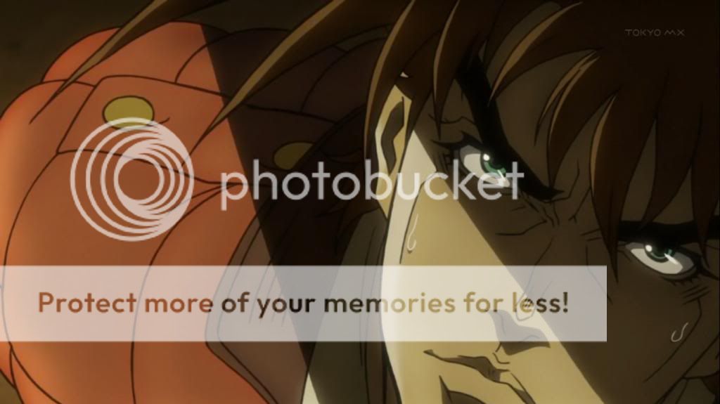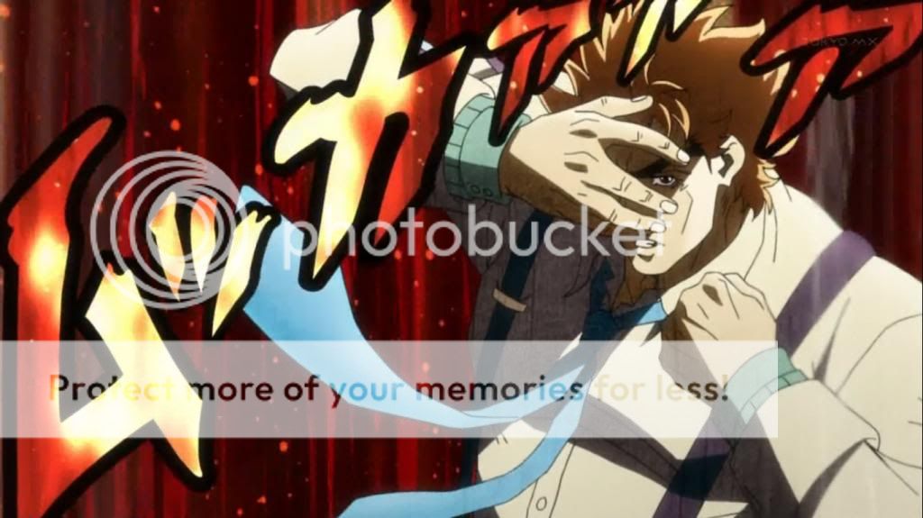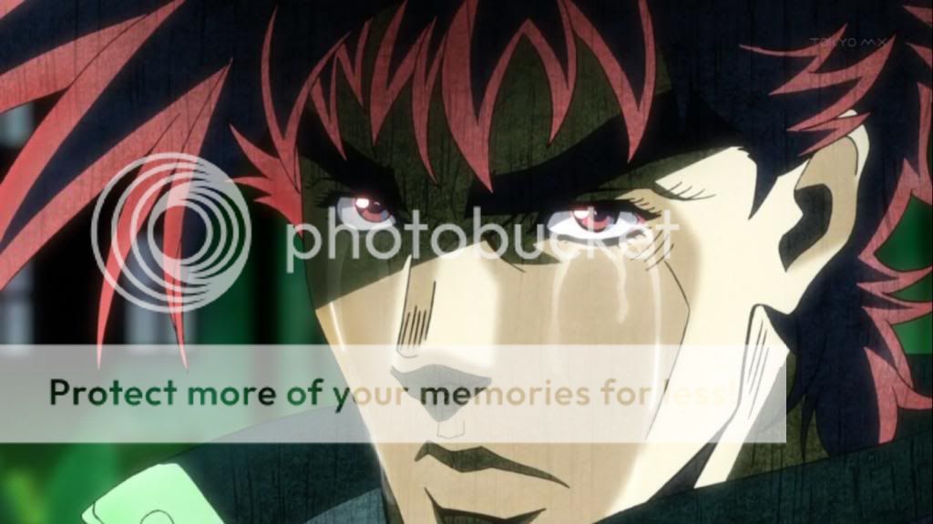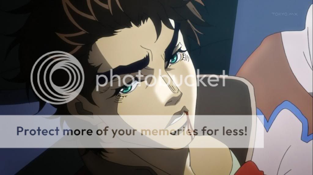 這時喬瑟夫被打出的血,滴下來弄髒了他所穿的衣服,而本來冷靜的喬瑟夫,也展現出了怒容。