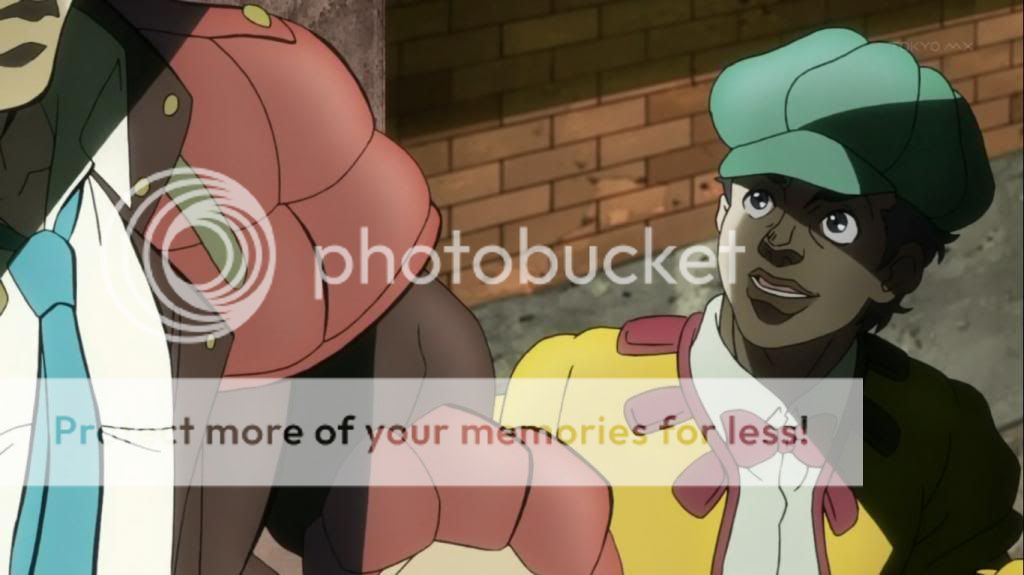 喬瑟夫以為要再戰一場,而立即戒備,不過那名黑道卻對自己手下(流氓)的行為道歉,並開始向艾莉娜搭話。