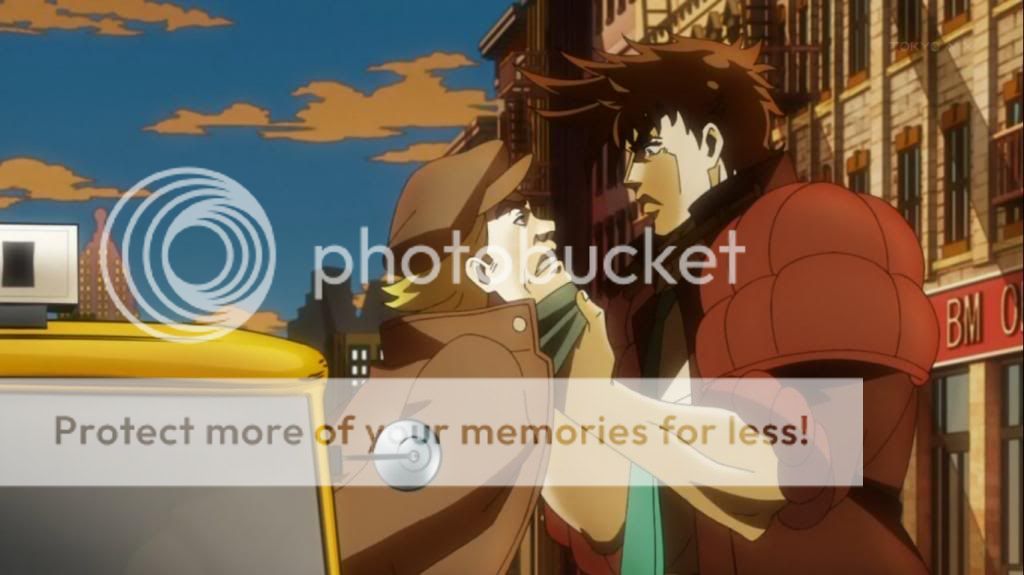 不過漫畫中喬瑟夫在這之後,立刻就開始盯著旁邊的美國女孩,以反差表現了他和喬納森不同的輕浮性格。不過動畫大概是為了節奏安排,省去了這一段。